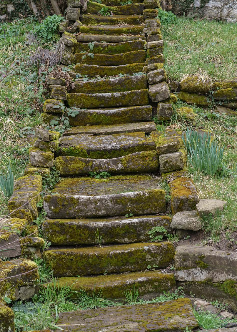 Abb. 7) Ansicht der Treppenanlage zum Kräuter- und Blumengarten vor der Gartenrestaurierung. (Foto: Isabel David)
