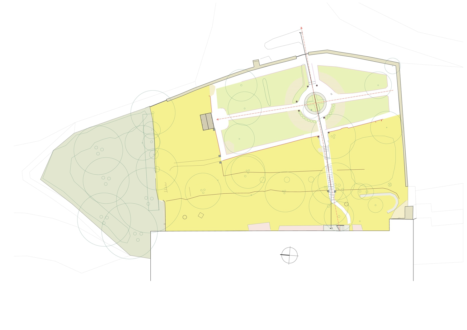 Abb. 16) Illustration zur gartendenkmalpflegerischen Zielplanung. (Illustration: Therese Schreiber)