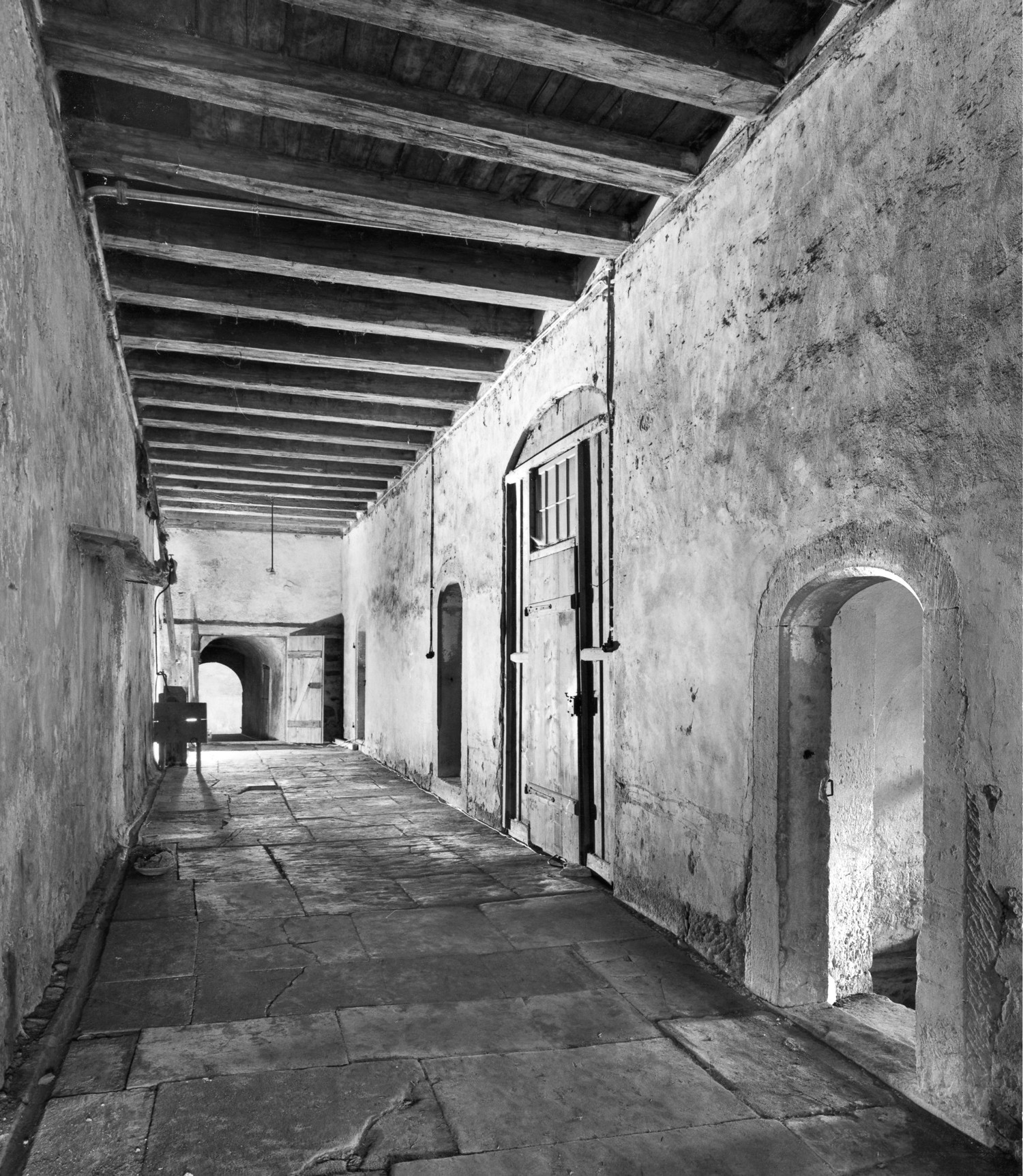 Abb. 14) Kellergang im Kloster Binsdorf mit Zugang zum kleinen Keller, der zur Aufbewahrung des «Kräutelwerks» diente. (Mit freundlicher Genehmigung des Landesamts für Denkmalpflege im RP Stuttgart, Bildarchiv der Bau- und Kunstdenkmalpflege Tübingen, Fotograf Helmut Hell, Aufnahmejahr 1969, Arch.-Nr. 4669)